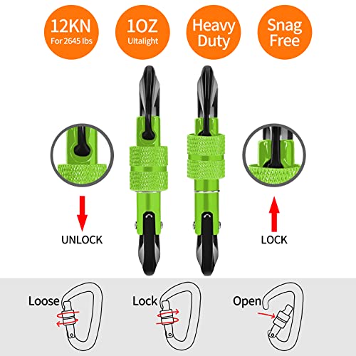 ✅Heavy duty Carabiners: Each carabiner clip features minimum breaking strength at 12KN (2697 lbs) Each Carabiner weighs only 1.02 ounces (29 grams)